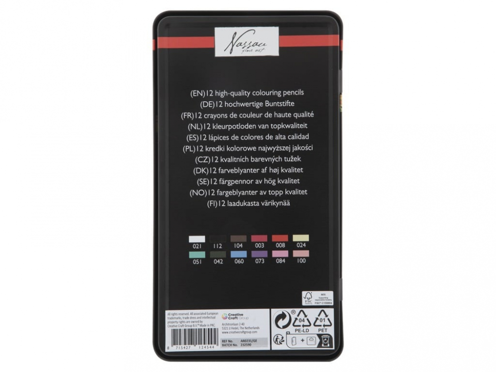 Imbogatiti-va creatiile artistice cu setul de creioane colorate Nassau, ideal pentru artisti si amatori! Acest set de 12 creioane de inalta calitate va ofera culori bogate si vibrante, perfect selectionate pentru a aduce viata desenelor si proiectelor voastre. Caracteristici: