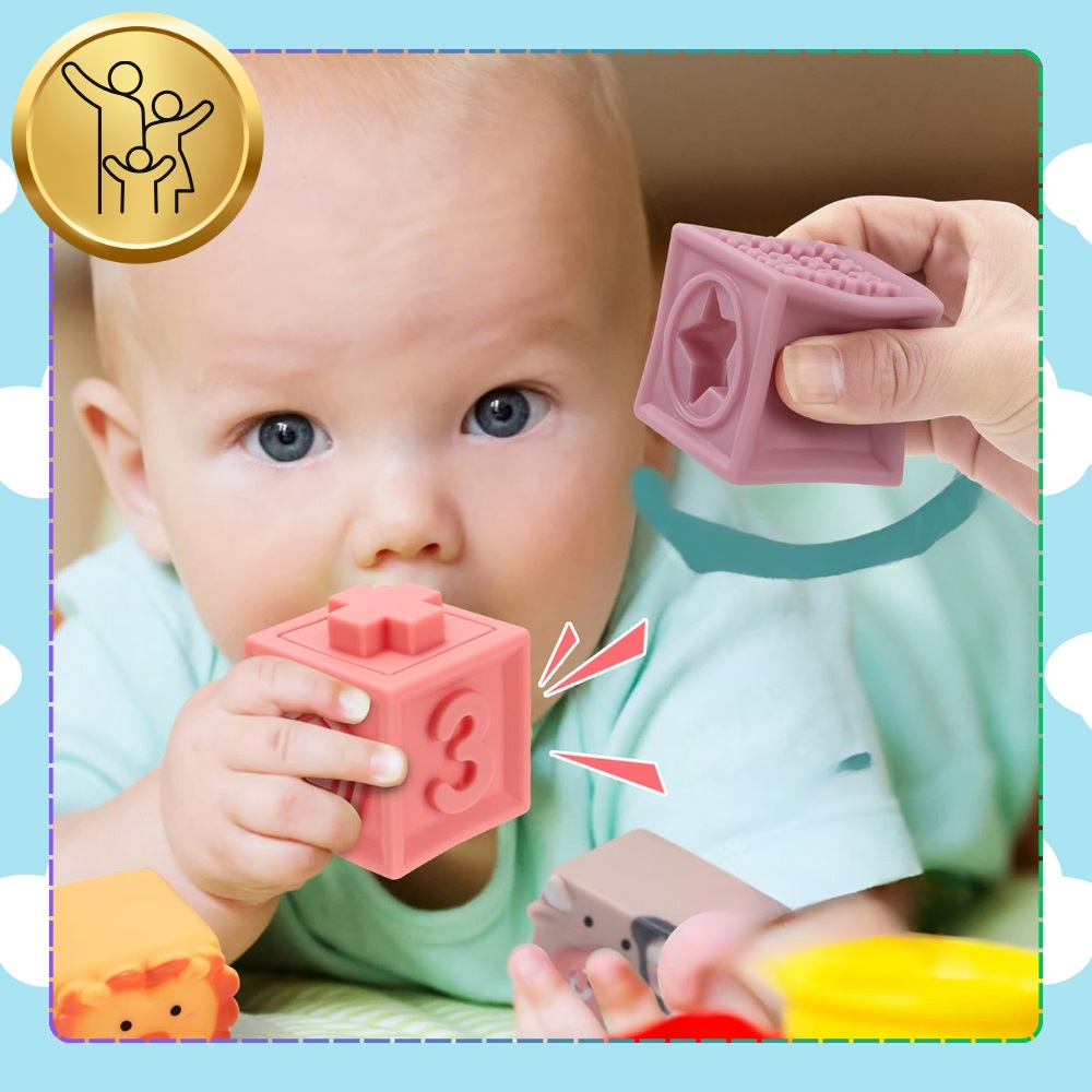 * Descopera bucuria de a invata prin joaca cu aceste blocuri moi si colorate, perfecte pentru dentitie.