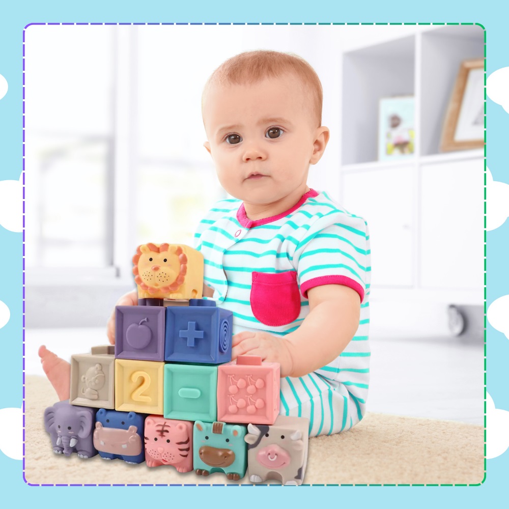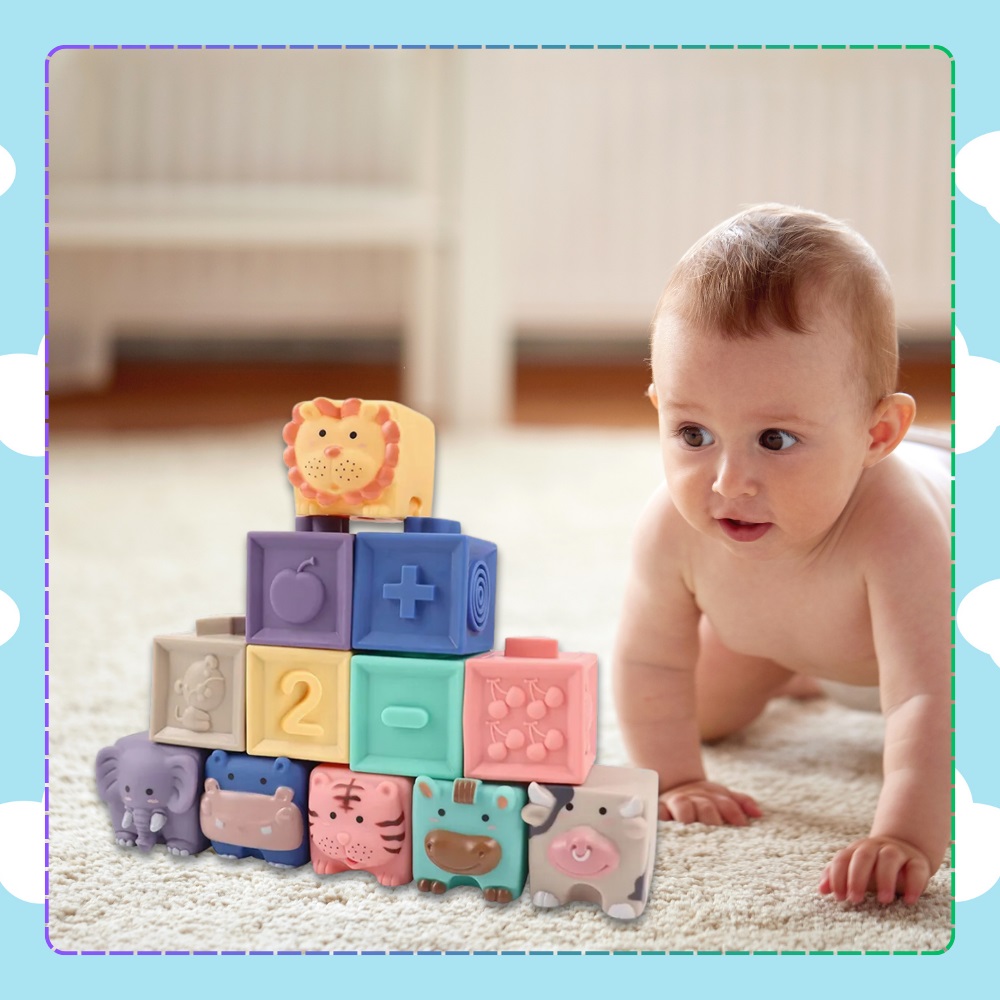 * Set de 12 blocuri senzoriale moi pentru copilasi:construieste, descopera, creste! Perfecte pentru dezvoltarea timpurie, aceste blocuri moi sunt ideale pentru mainile mici si gusitele curioase.