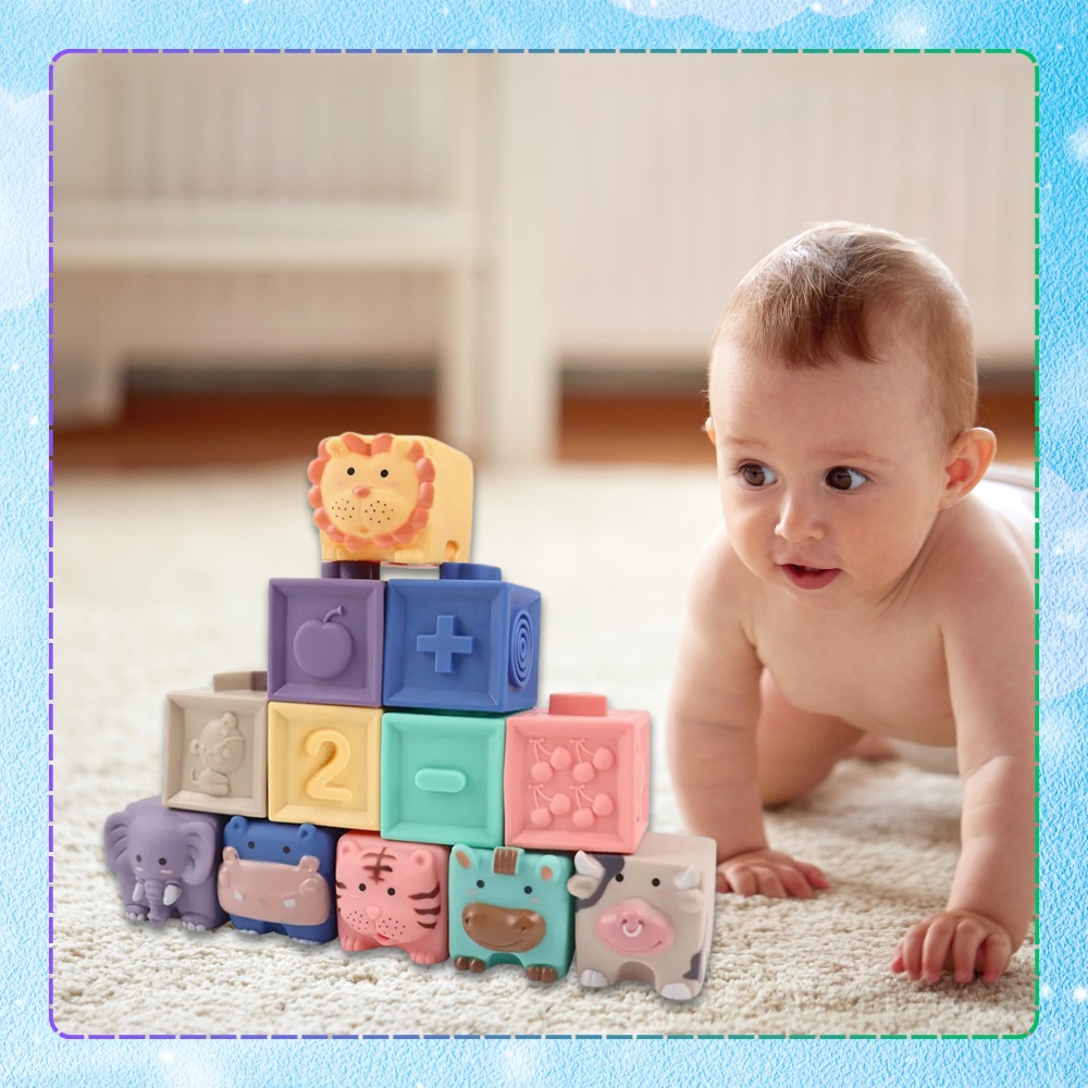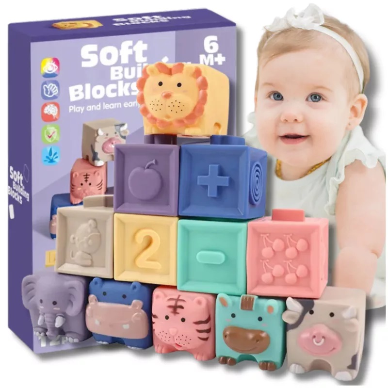 * Set de 12 blocuri senzoriale moi pentru copilasi :construieste, descopera, creste! Perfecte pentru dezvoltarea timpurie, aceste blocuri moi sunt ideale pentru mainile mici si gusitele curioase.