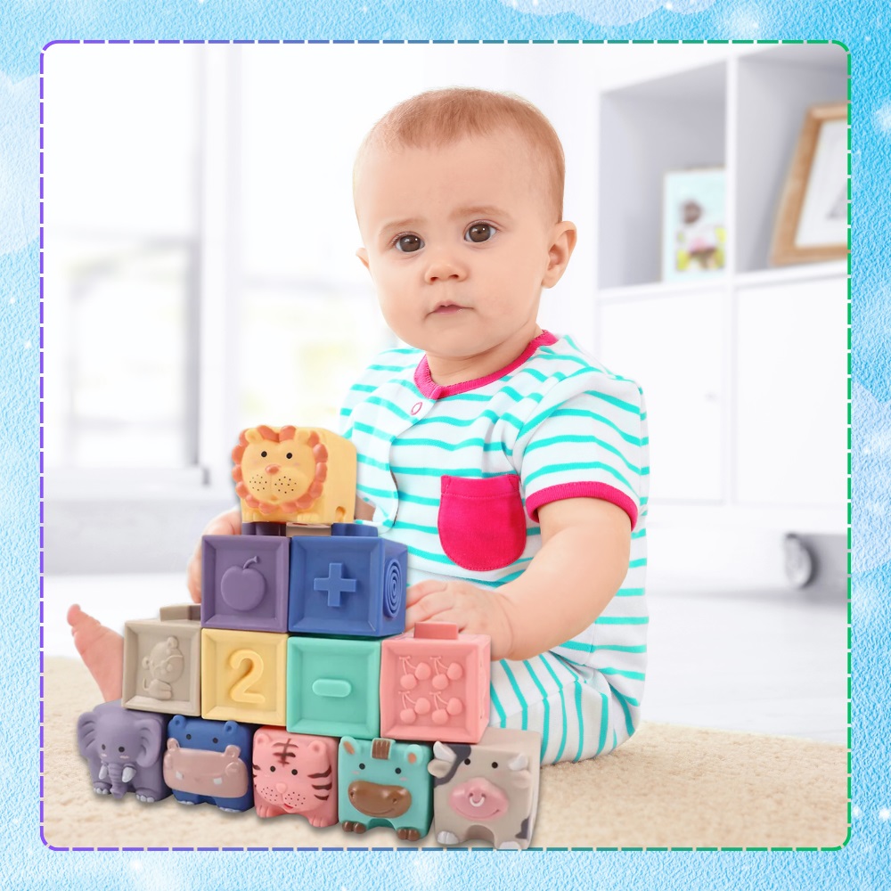 * Descopera bucuria de a invata prin joaca cu aceste blocuri moi si colorate, perfecte pentru dentitie.