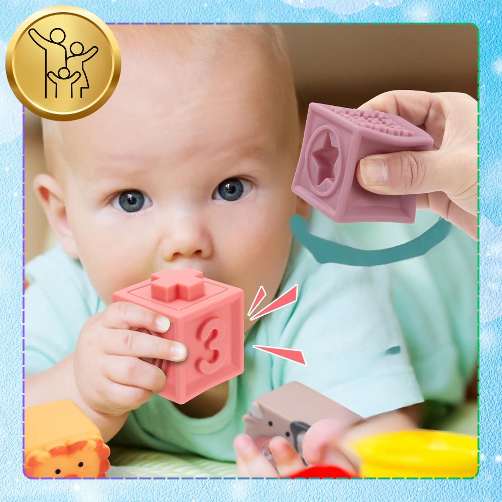 * Cuburile senzoriale din silicon, in culori pastelate si cu margini rotunde, este alegerea excelenta pentru joaca celor mici!