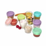 Recipientele de 59 ml si 118 ml pentru mancare pentru bebelusi de la Melii fac usor de portionat, depozitat si servit mancarea bebelusului, blocand prospetimea, prevenind inghetarea in congelator si evitand varsarea in geanta pentru scutece sau cutia de pranz.