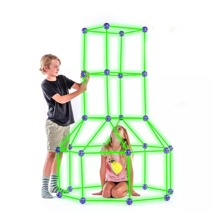 Set 128 piese pentru constructie cort cu tuburi fluorescente si conectori Matadi
