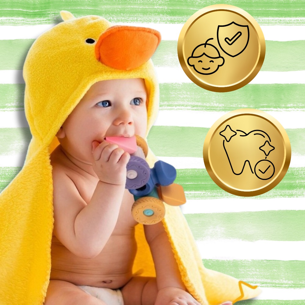 * Descopera bucuria de a invata prin joaca cu aceste forme moi si colorate, perfecte pentru dentitie.