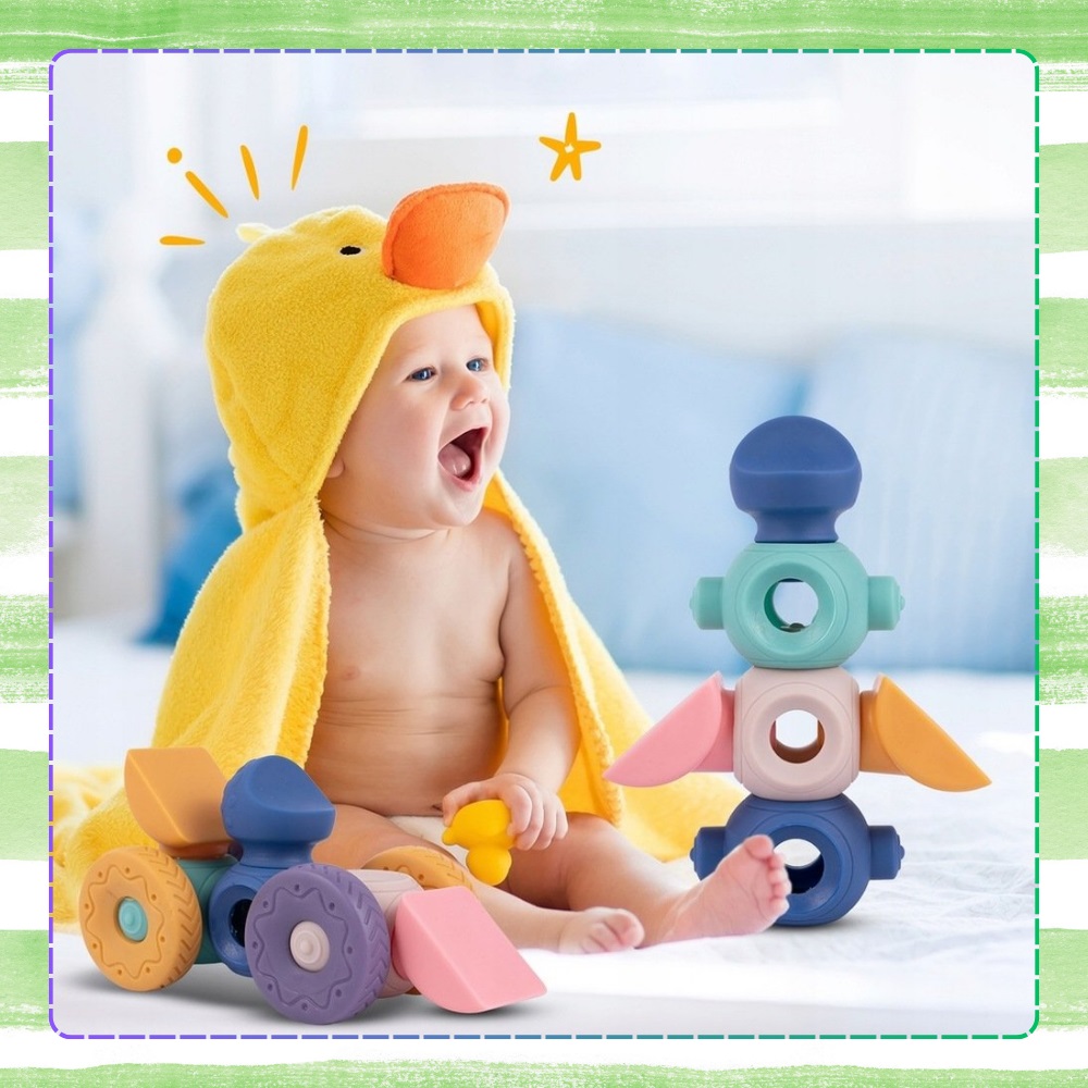 * Formele senzoriale din silicon, in culori pastelate si cu margini rotunde, este alegerea excelenta pentru joaca celor mici!