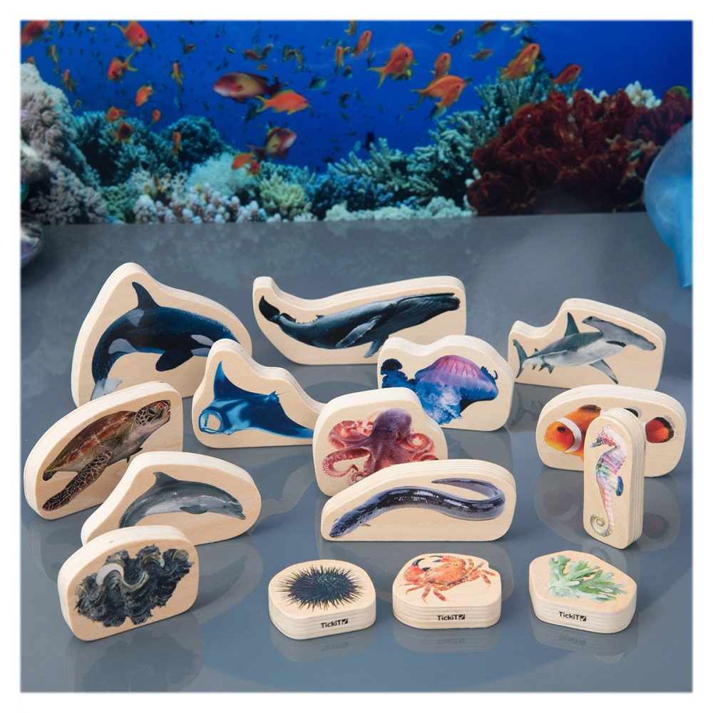 Set 15 blocuri din lemn cu Animale marine TickiT