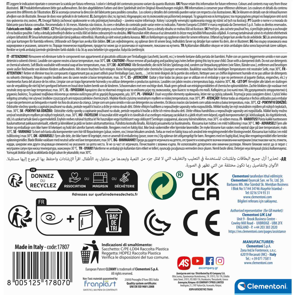 O noua galeata Clemmy cu capac moale, imbogatita cu texturi si sloturi pentru a juca cu cele 15 blocuri incluse.