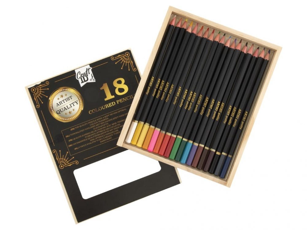 Set 18 creioane colorate in cutie de lemn Craft ID