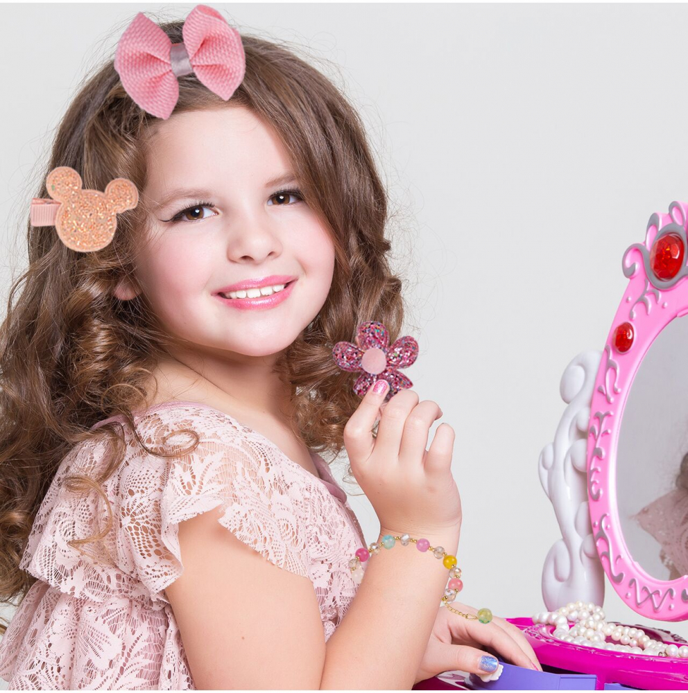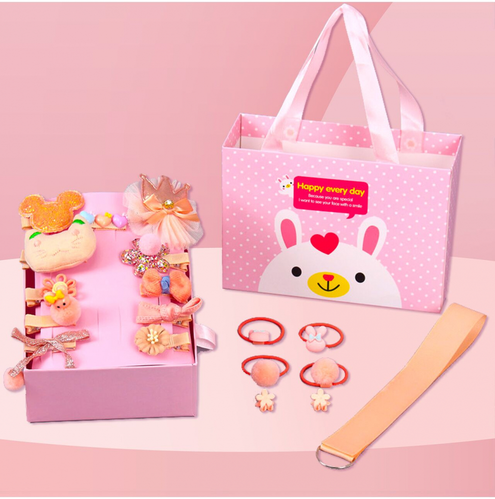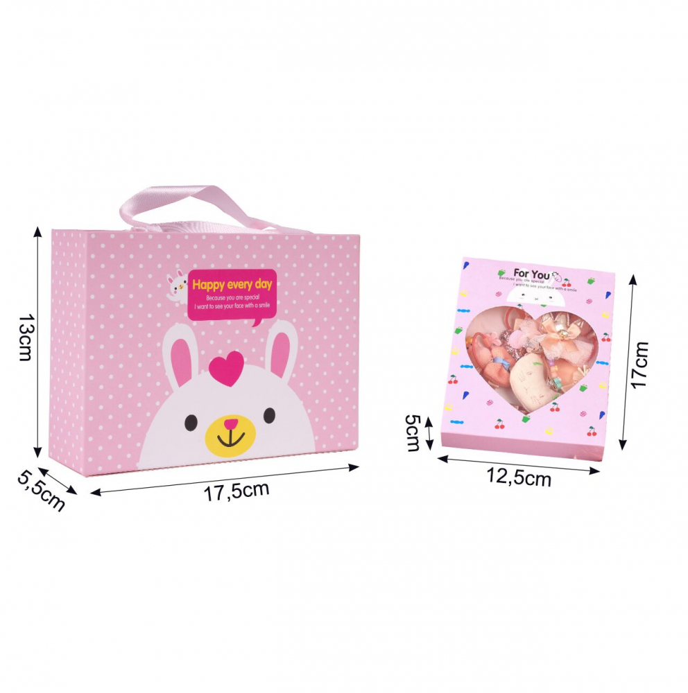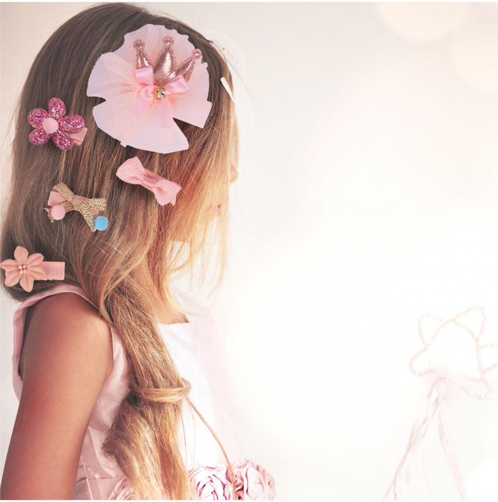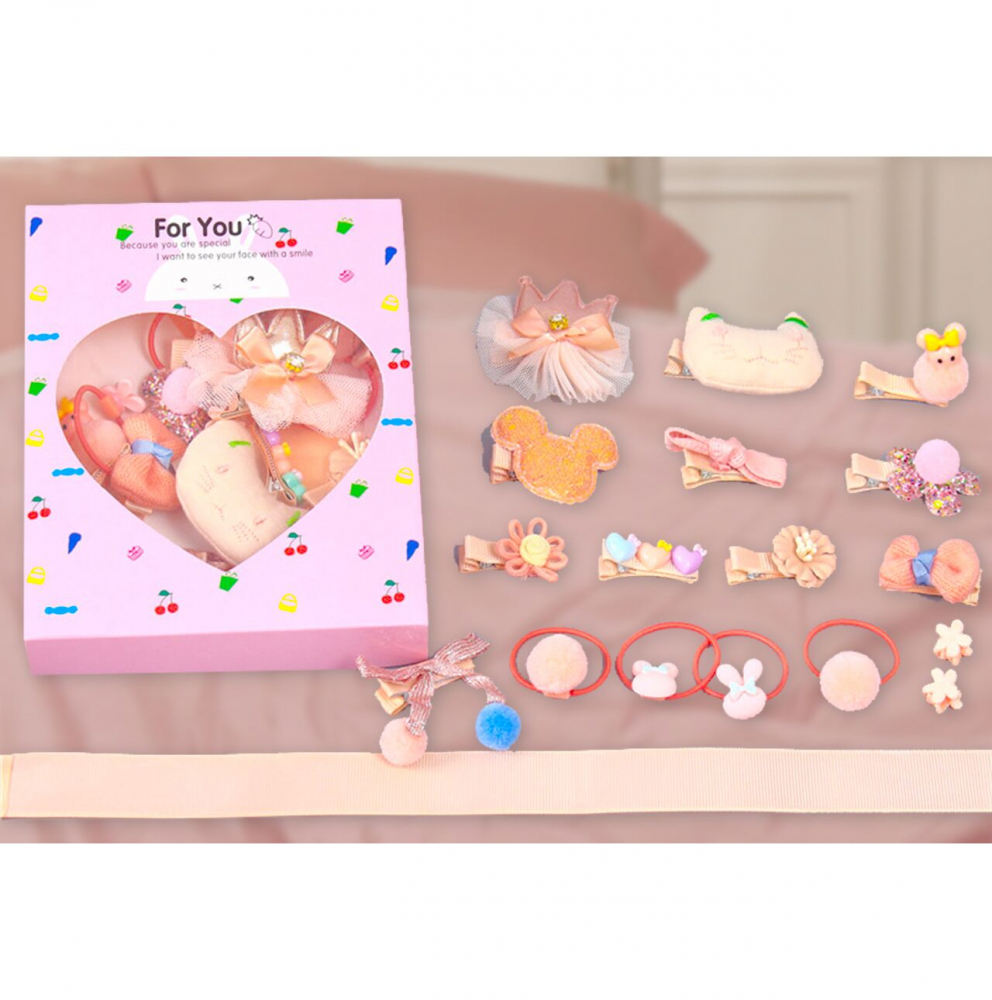 Un set minunat, cu 19 accesorii pentru par, ambalate frumos in cutiuta roz, perfecte pentru mica ta printesa.