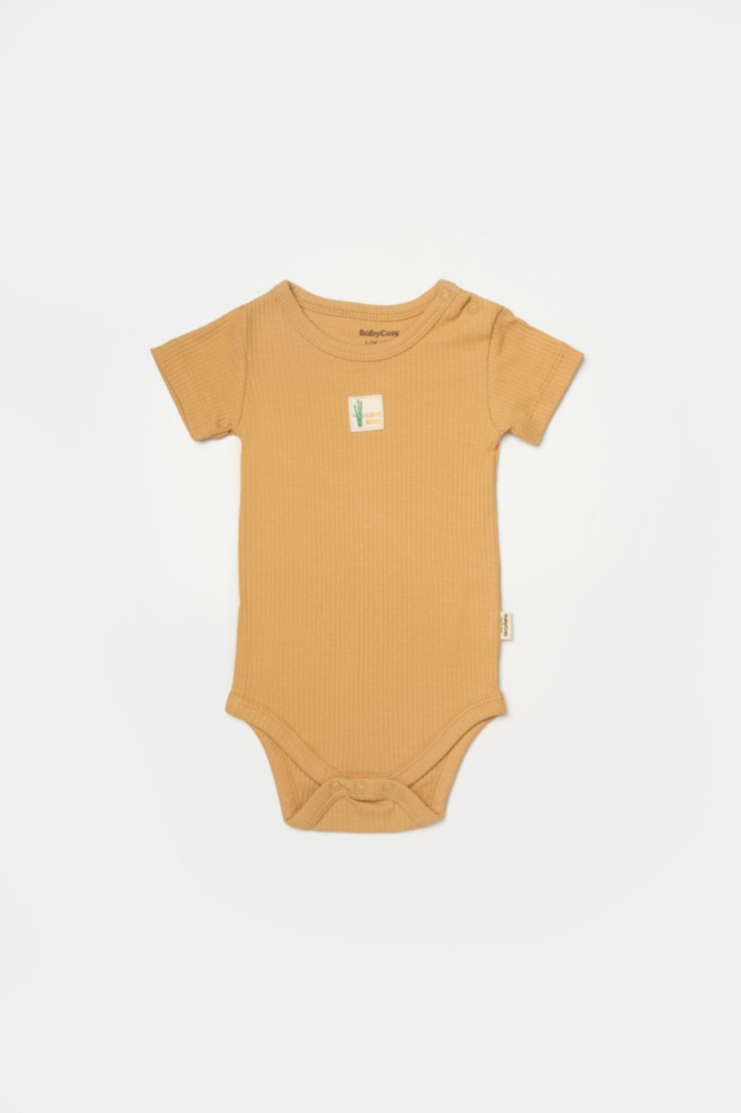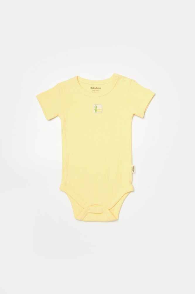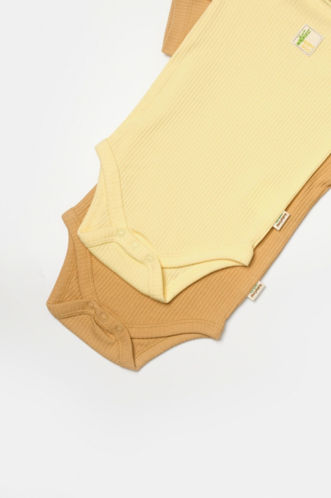 Set 2 body Bamboo, galben, BabyCosy, 50% bumbac + 50% bambus, marime 9-12 luni