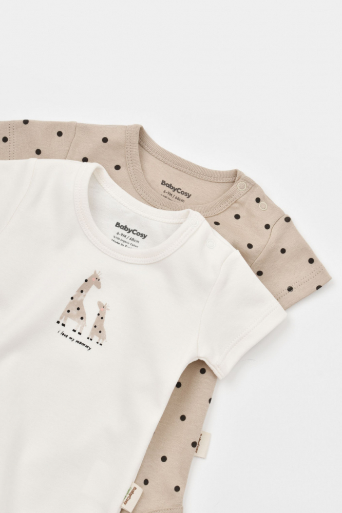 Set 2 body-uri bebe unisex Girafa bumbac organic 12-18 Luni