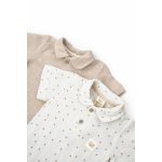 Acestea sunt hainute din 100% bumbac organic- material certificat GOTS fiind un material respirabil si sanatos pentru pielea bebelusului.