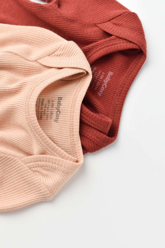 Set 2 body-uri cu maneca lunga din bumbac organic si modal Caramiziu/Somon 18-24 Luni