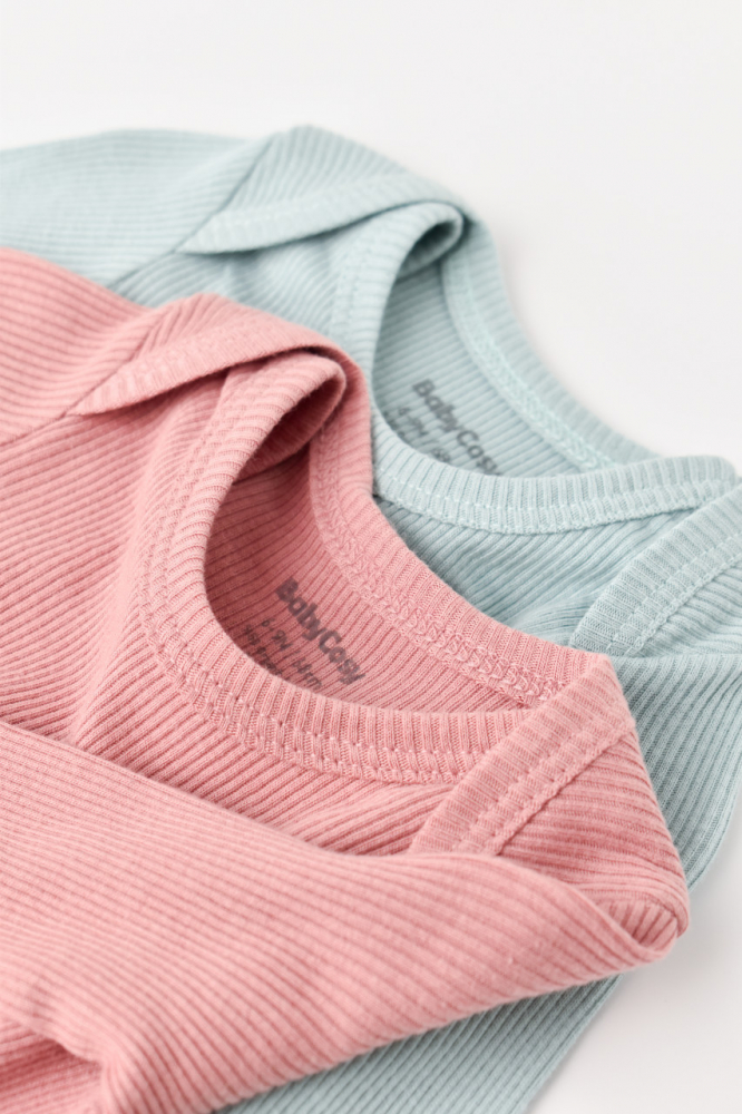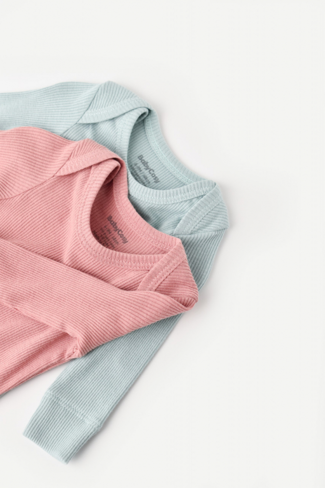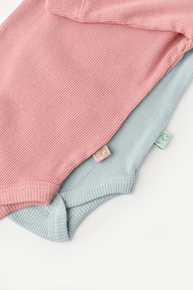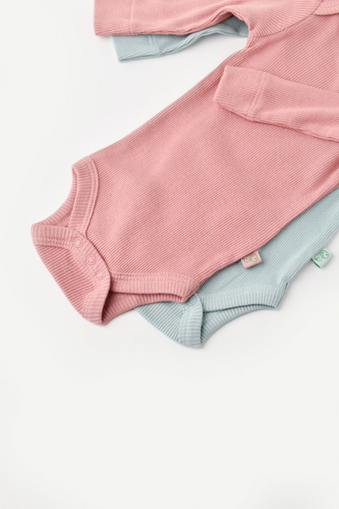 Set 2 body-uri cu maneca lunga din bumbac organic si modal Mint/Rose Marime 0-3 Luni