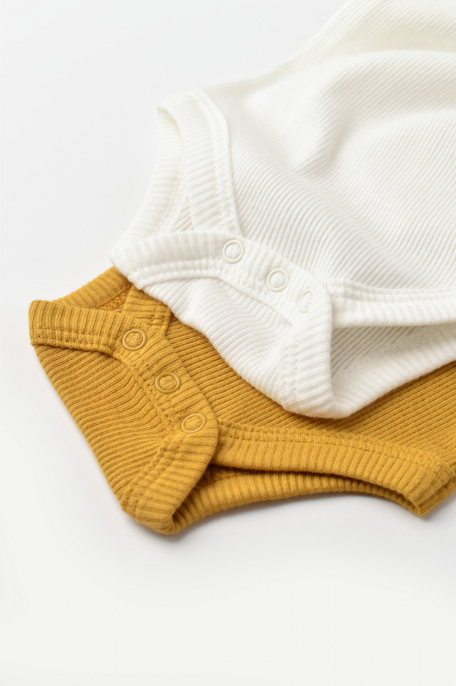 Set 2 body-uri cu maneca lunga din bumbac organic si modal Mustar/Ecru 0-3 Luni