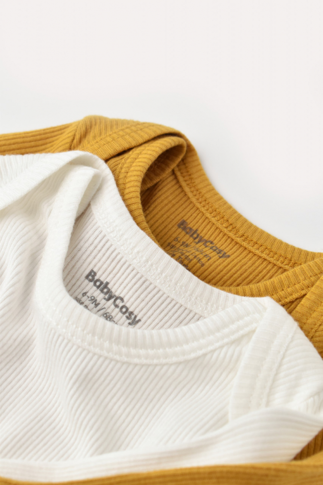 Set 2 body-uri cu maneca lunga din bumbac organic si modal Mustar/Ecru 9-12 luni