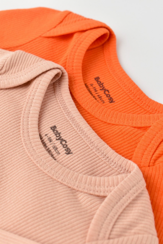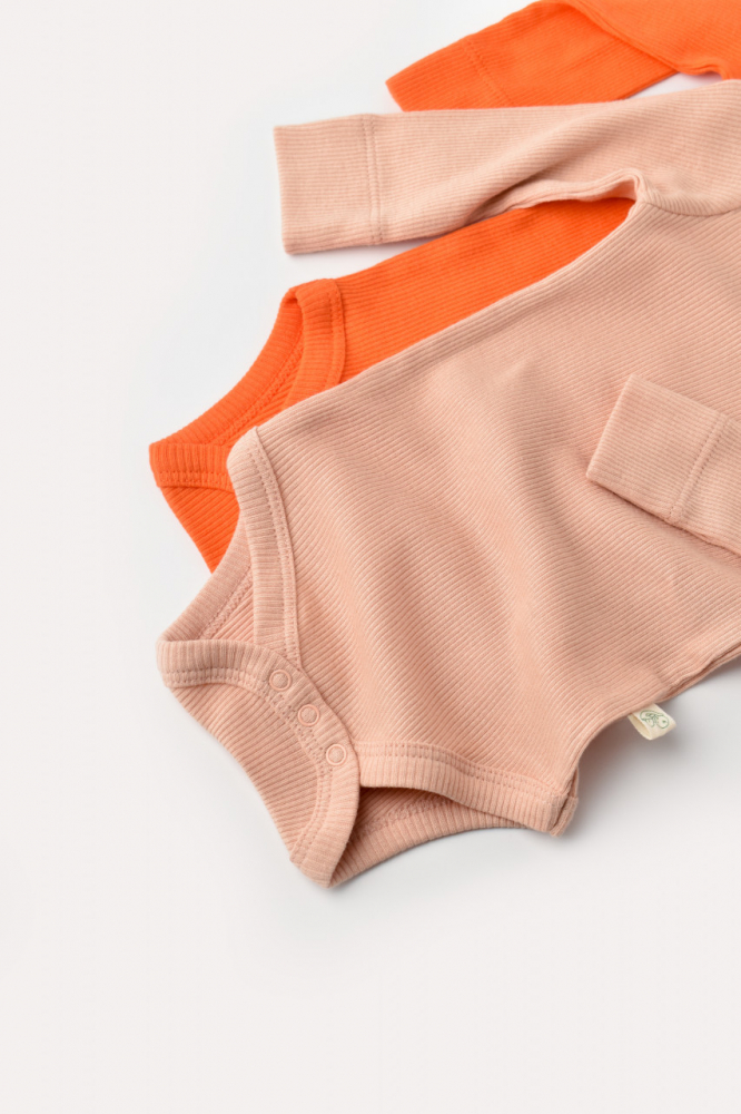 Set 2 body-uri cu maneca lunga din bumbac organic si modal Rodie/Piersica 6-9 luni