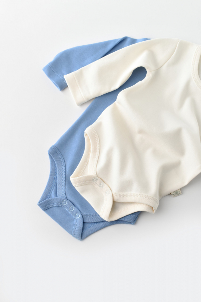 Set 2 body-uri cu maneca lunga Ecru/Bleu Baby Cosy marime 6-9 luni