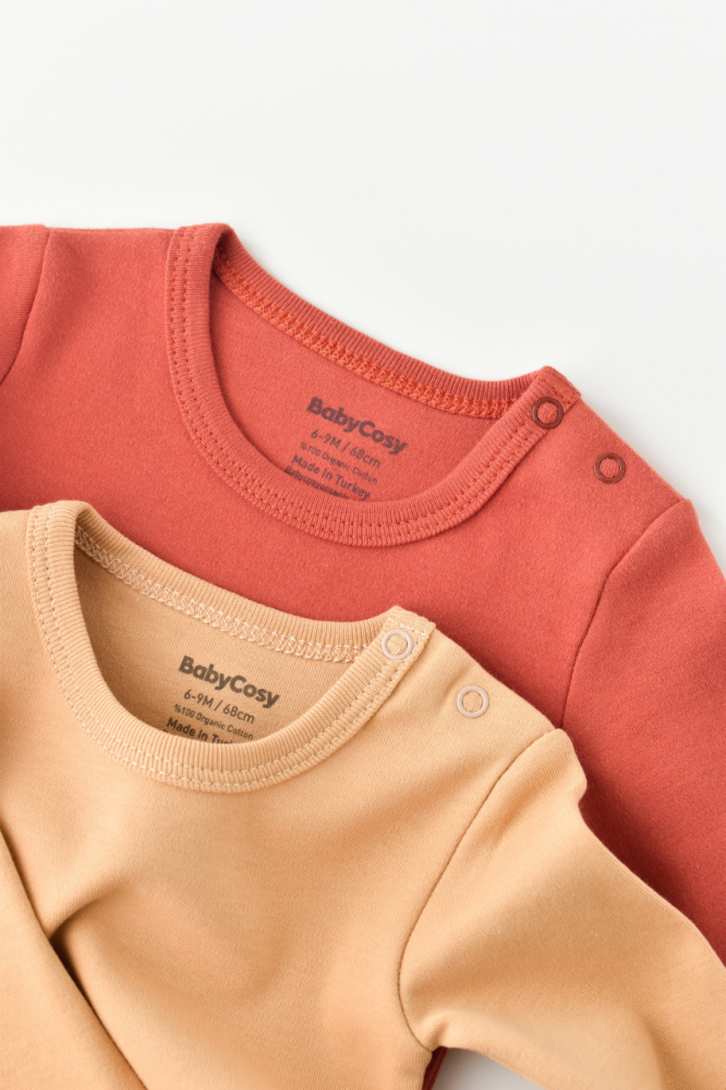 Set 2 body-uri cu maneca lunga Mustar/Scortisoara Baby Cosy marime 3-6 luni
