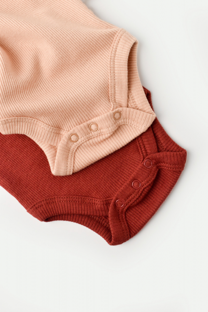 Set 2 body-uri cu maneca scurta Baby Cosy din bumbac organic si modal Caramiziu/Somon marime 9-12 luni
