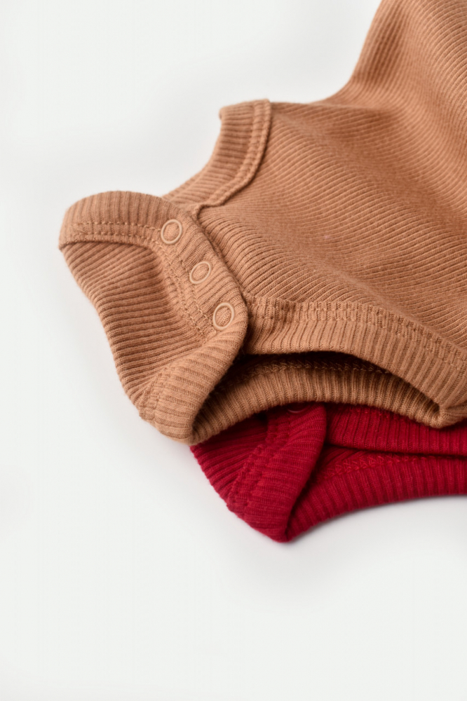 Set 2 body-uri cu maneca scurta Baby Cosy din bumbac organic si modal Maro/Rosu marime 9-12 luni