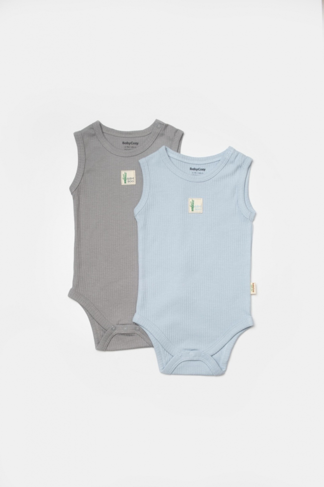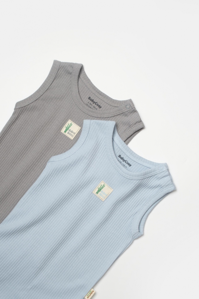Set 2 body-uri fara maneci Bamboo, bleu, BabyCosy, 50% bambus + 50% bumbac, marime 6-9 luni