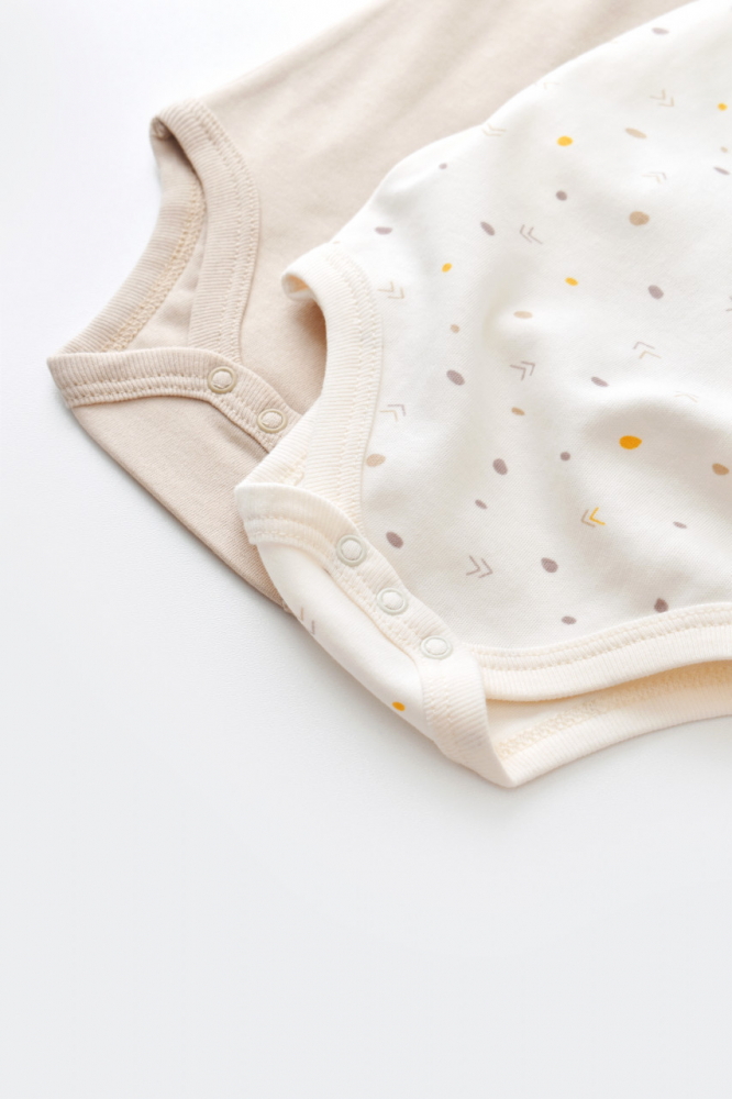 Set 2 body-uri fara maneci bebe unisex Baby Cosy 100% bumbac organic Ecru cu buline 9-12 luni