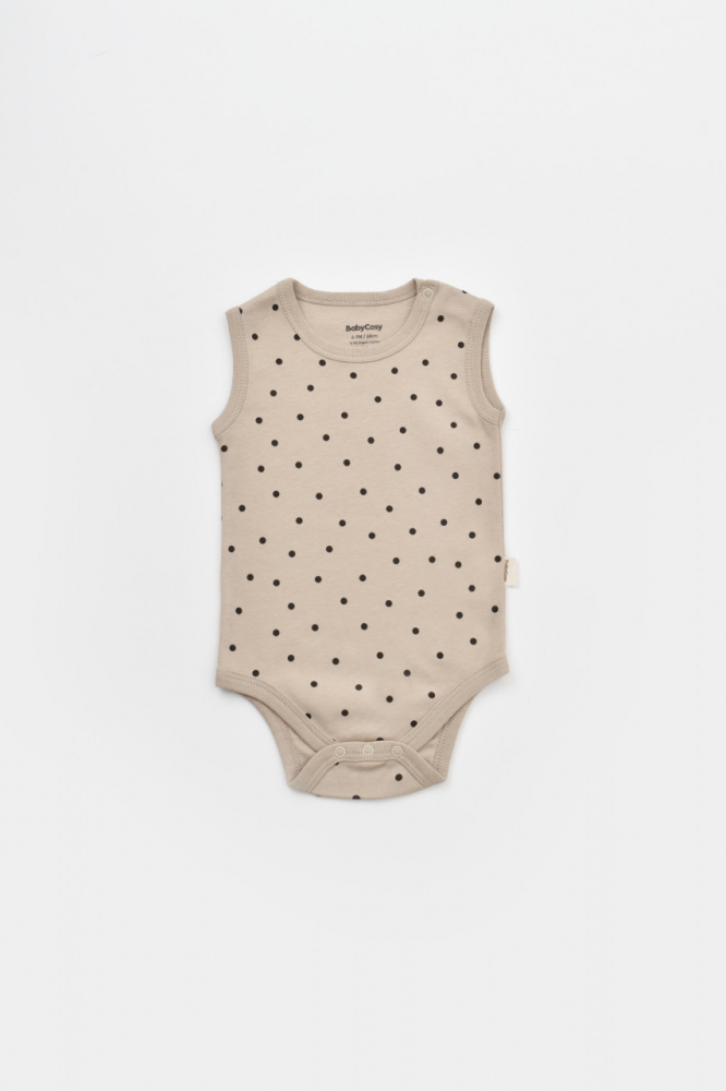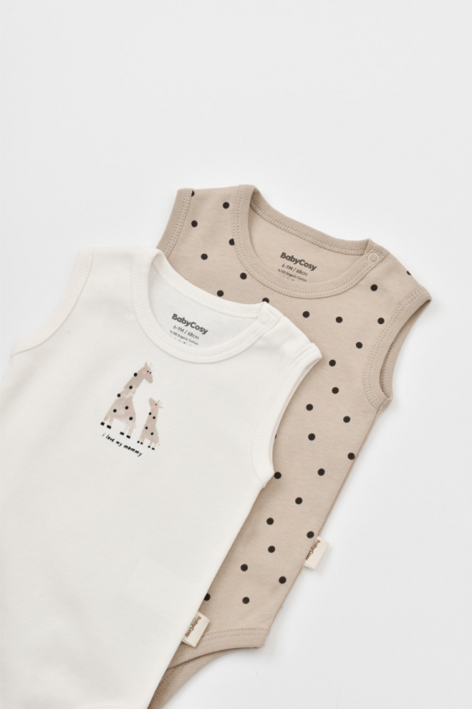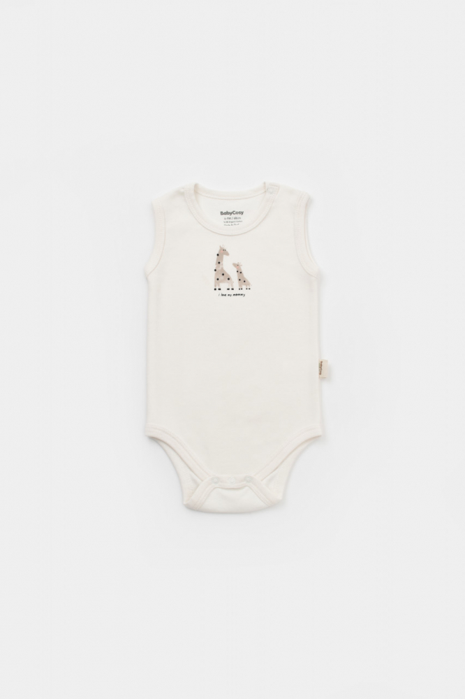 Body-uri fara maneci pentru bebelusi 100% din bumbac organic moale, delicat cu pielea gingasa a a bebelusului. Printurile sunt cu vopseluri pe baza de apa si toate produsele sunt in concordanta cu standardele GOTS.