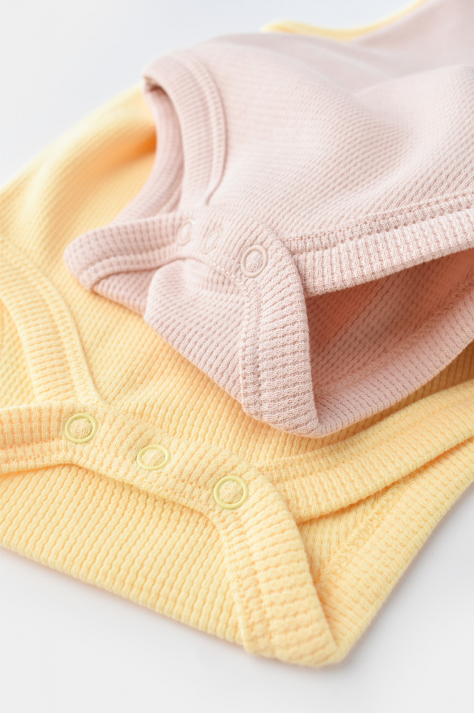 Set 2 body-uri fara maneci din bumbac organic Galben/Roz Baby Cosy marime 18-24 luni