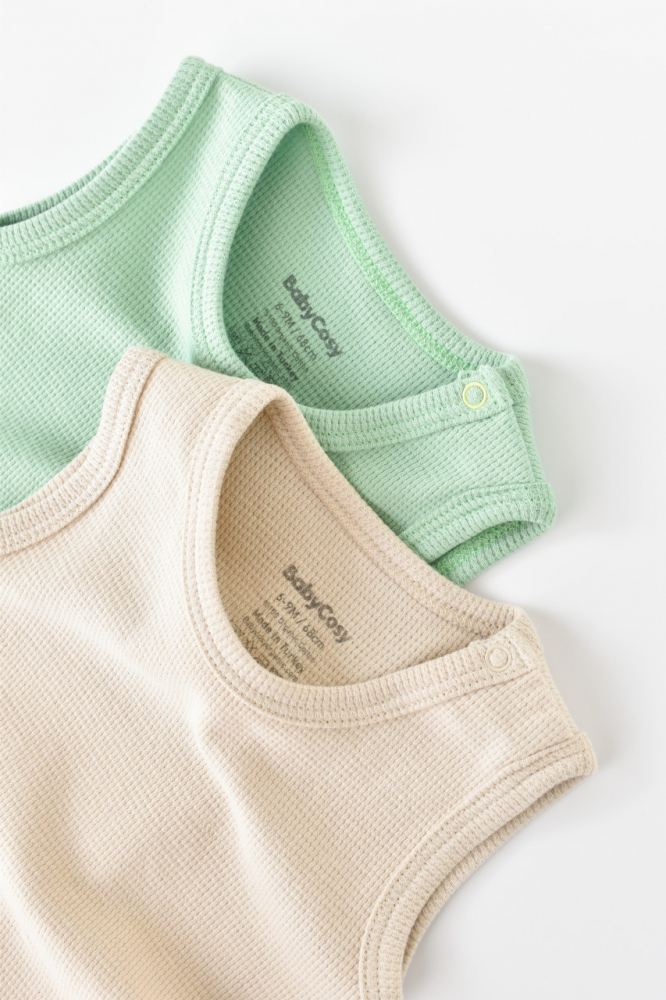 Set 2 body-uri fara maneci din bumbac organic Mint/Stone Baby Cosy marime 3-6 luni