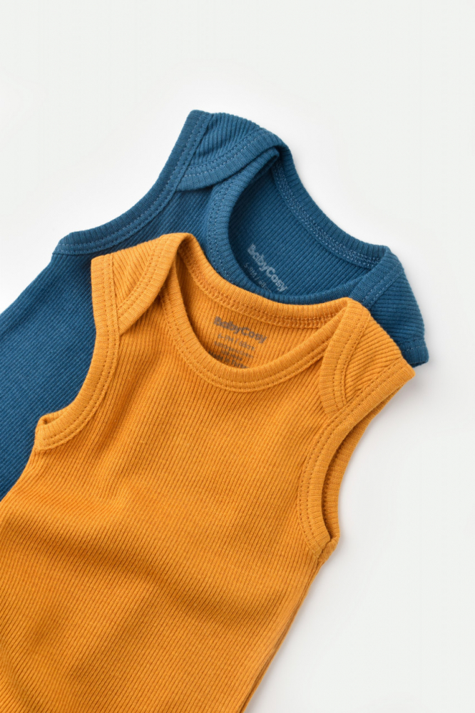 Set 2 body-uri fara maneci din bumbac organic si modal Bleumarin-Sofran Baby Cosy marime 12-18 luni