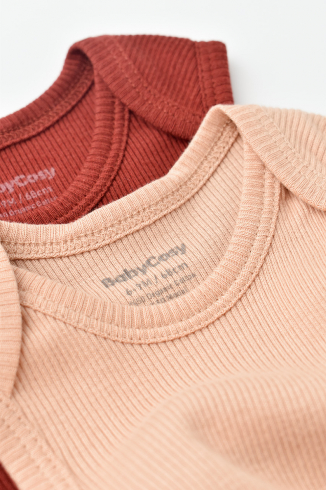 Set 2 body-uri fara maneci din bumbac organic si modal Caramiziu-Somon Baby Cosy marime 0-3 luni