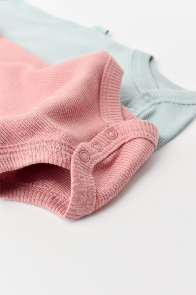 Set 2 body-uri fara maneci din bumbac organic si modal Mint-Rose Baby Cosy marime 9-12 luni
