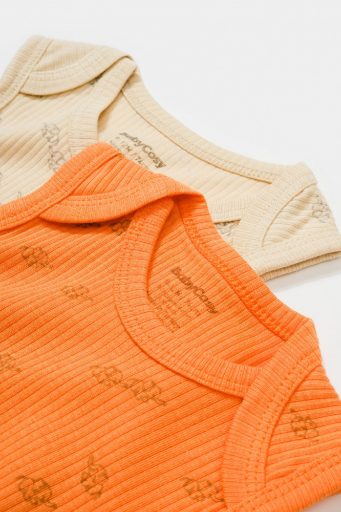 Set 2 body-uri fara maneci Printed modal si bumbac Stone/Apricot 18-24 Luni