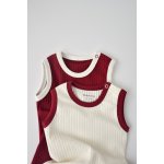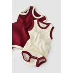 Set 2 body-uri fara maneci Ribana Bebe din bumbac organic si elastan Bordo/Ecru marime 12-18 luni