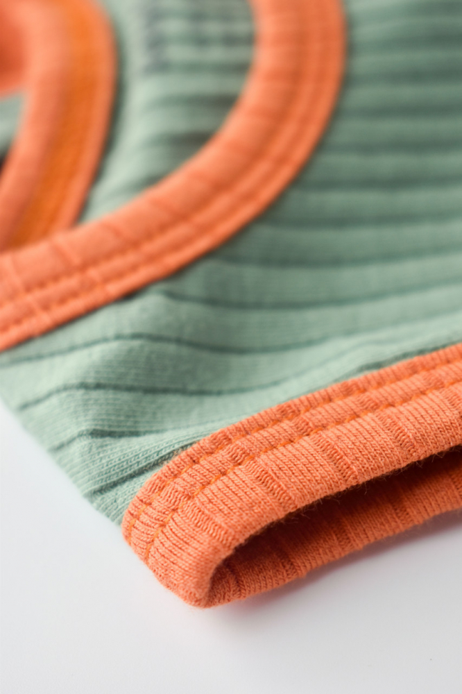 Set 2 body-uri fara maneci Ribana Bebe din bumbac organic si elastan Portocaliu/Verde marime 3-6 luni