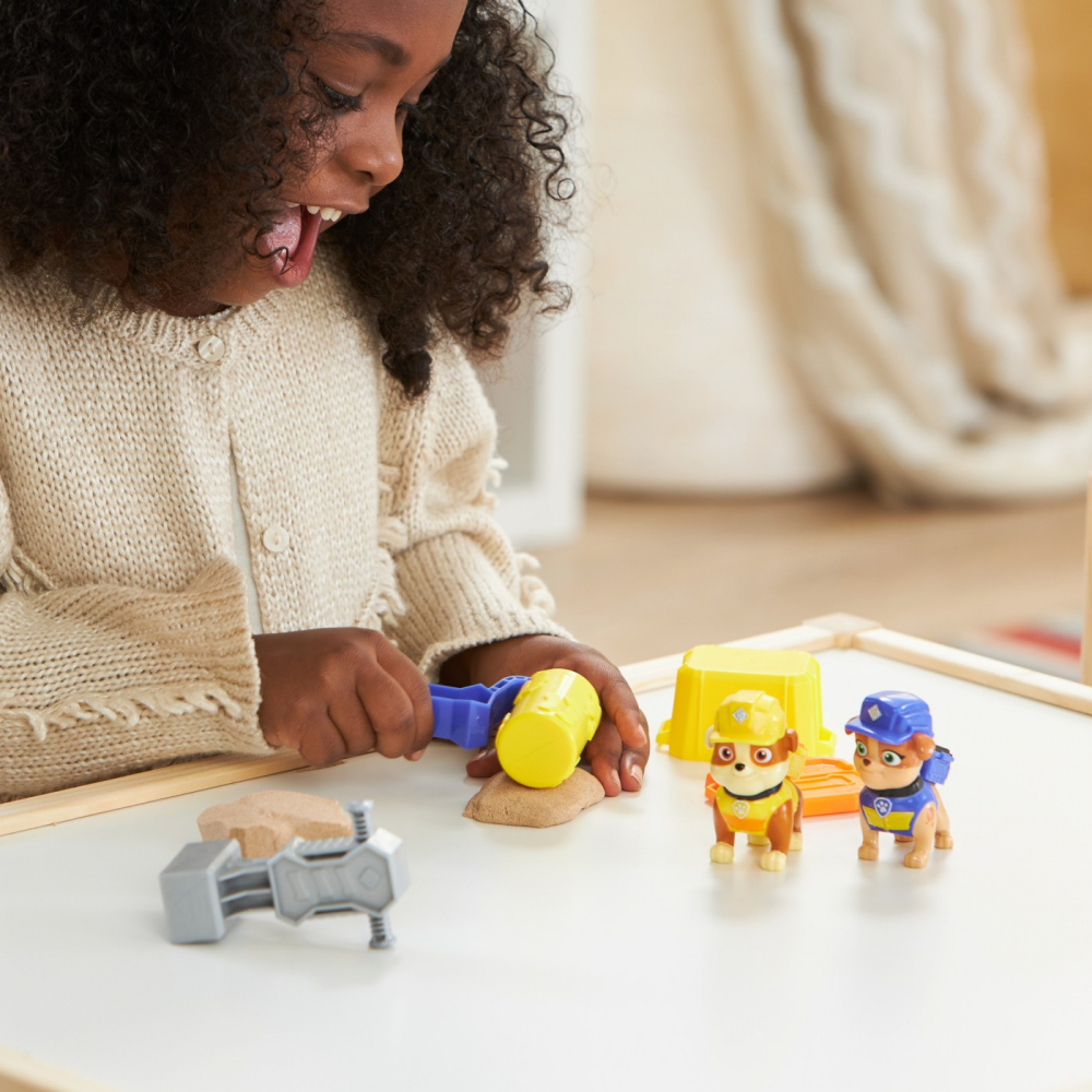 Kinetic Sand adera la el joc, facandu-l o jucarie de constructie usor de turnat si usor de curatat.