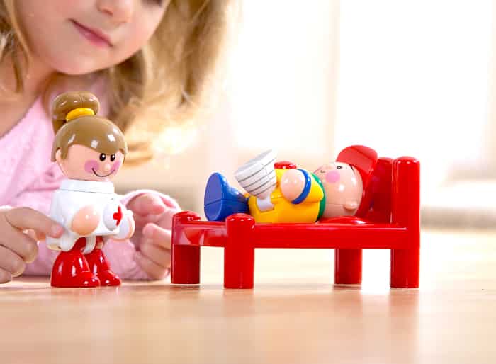 Poți face cunoștință cu două figurine simpatice, asistenta și pacientul, din gama de seturi de jocuri tematice Tolo!