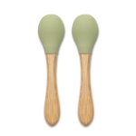 Set 2 lingurite din silicon si bambus, forma ergonomica Fresh Green