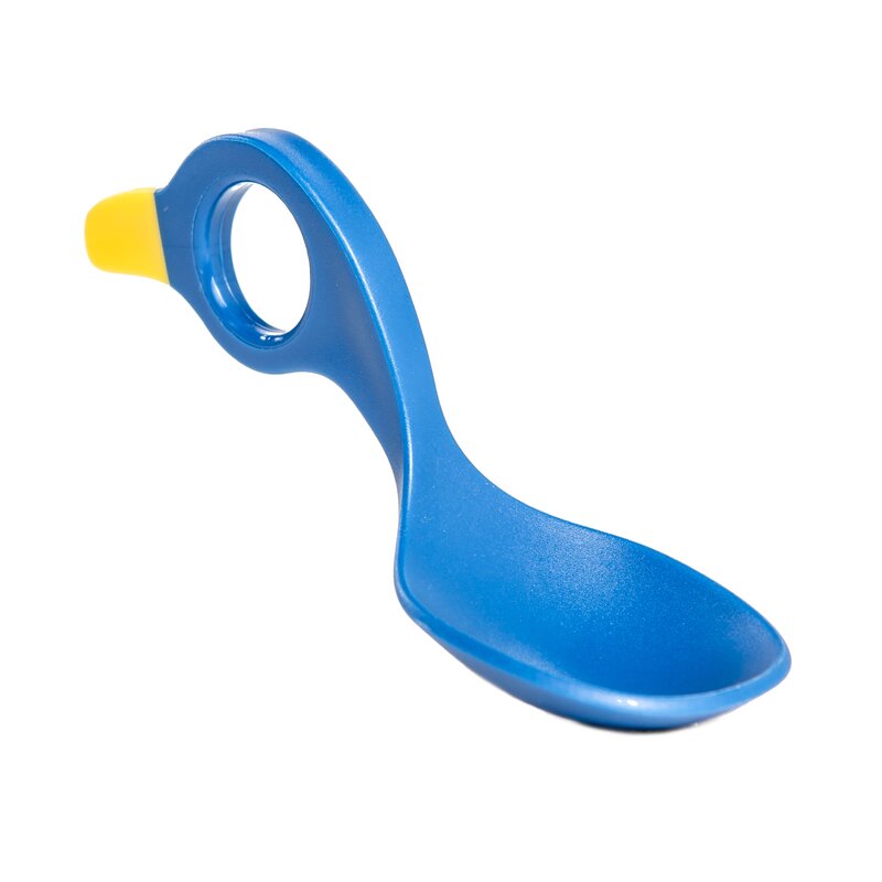 Orificiul din lingura asigura contactul intre degetul mare si aratator pentru o stabilitate sporita, iar daca copilul doreste, isi poate tine degetul mare sau aratatorul pentru o prindere ferma.