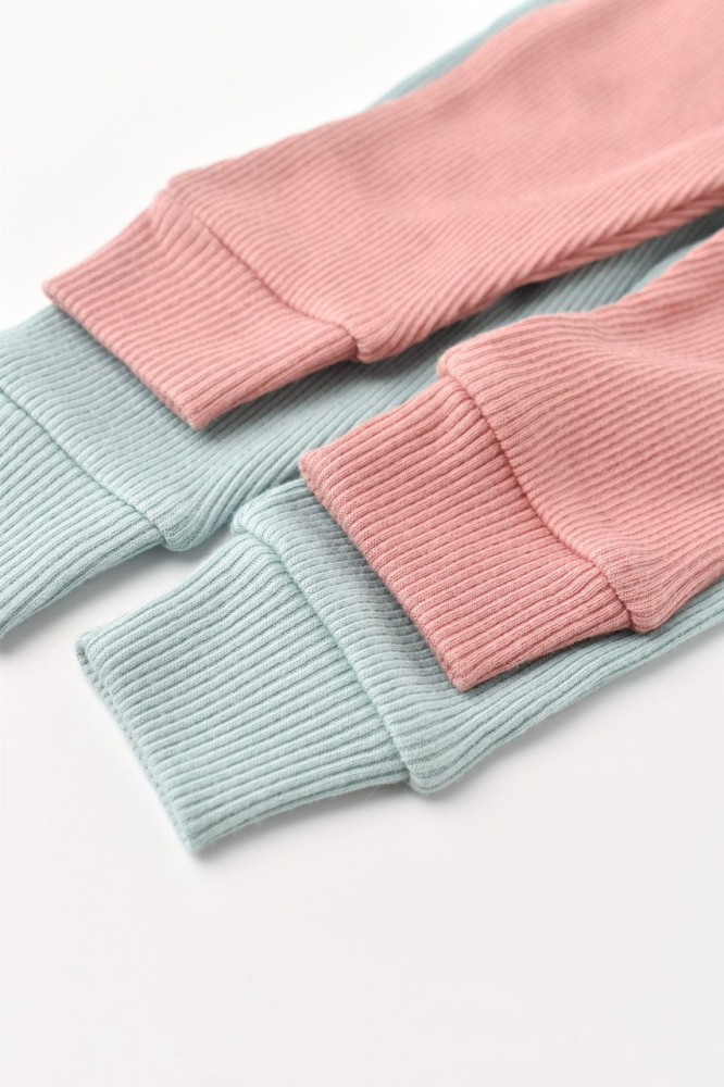 Set 2 pantaloni bebe unisex din bumbac organic si modal Baby Cosy Mint-Rose marime 12-18 luni