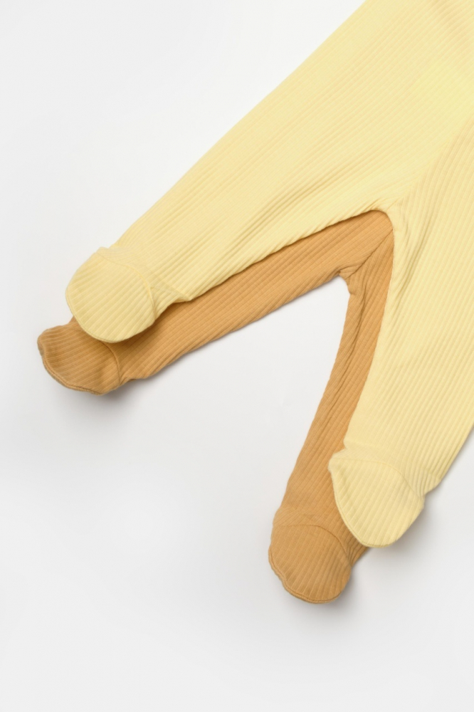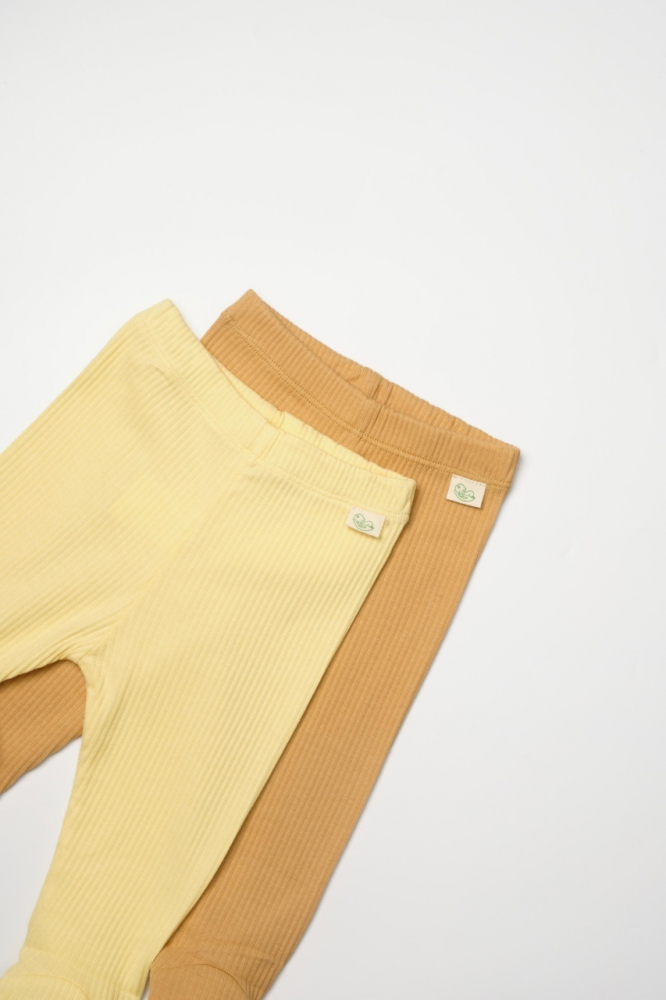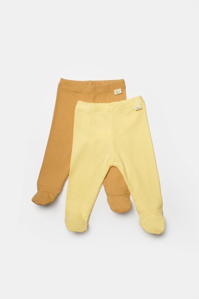 Set 2 pantaloni cu botosei Bamboo, galben, BabyCosy, 50% bumbac + 50% bambus, marime 3-6 Luni