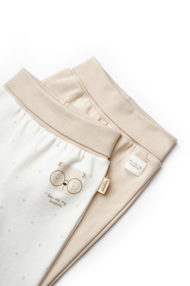 Set 2 pantaloni cu botosei bebe TeddyBear, BabyCosy, 100% bumbac organic, marime 0-3 Luni