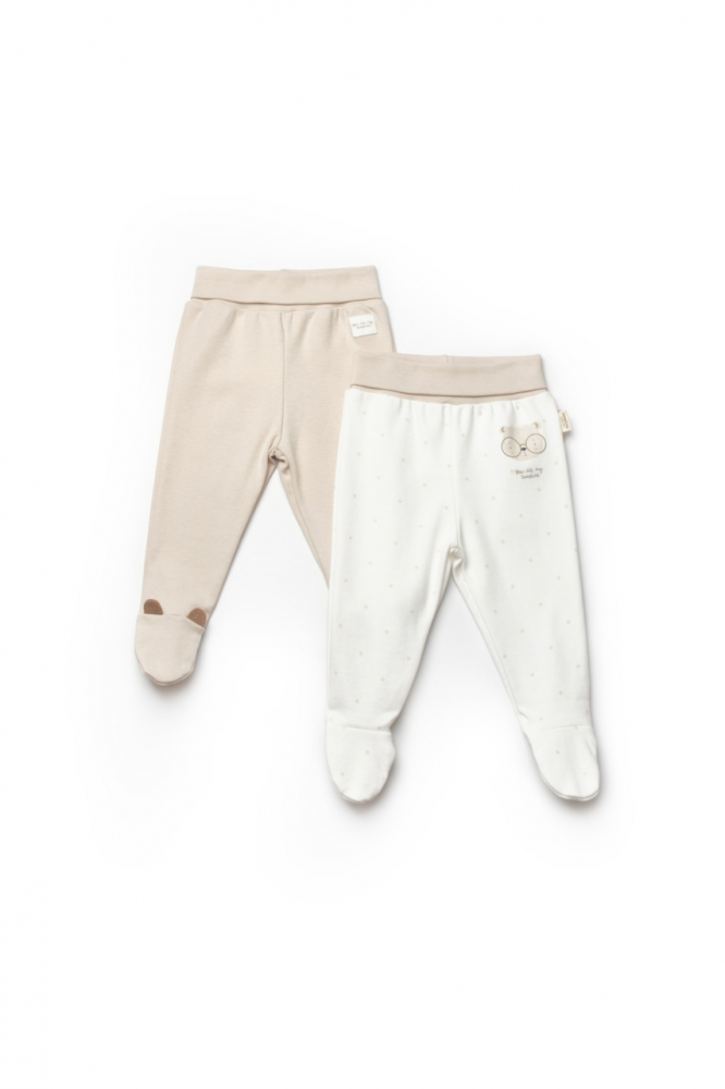 Set 2 pantaloni cu botosei bebe TeddyBear, BabyCosy, 100% bumbac organic marime 3-6 Luni