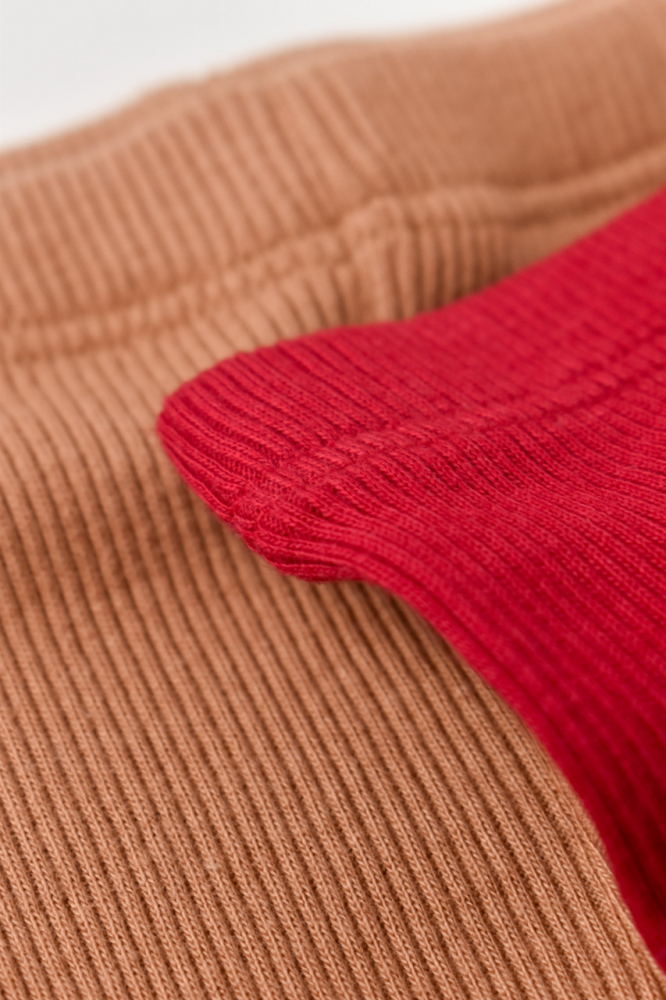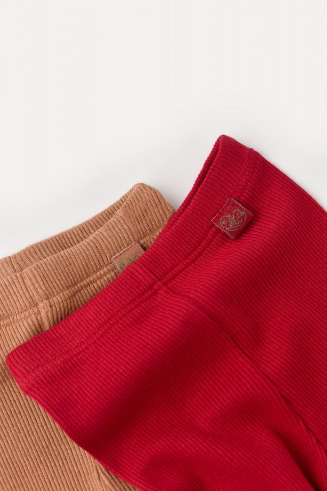 Set 2 pantaloni cu botosei bebe unisex din bumbac organic si modal Maro/Rosu Baby Cosy marime 0-3 luni