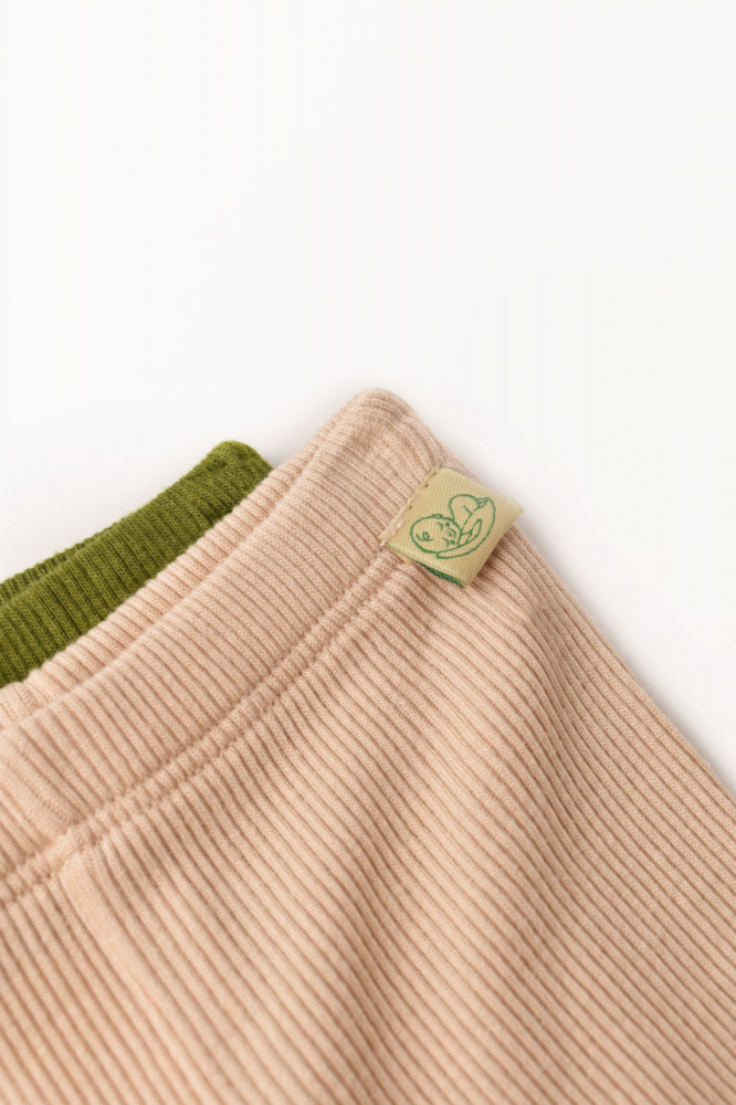 Set 2 pantaloni cu botosei bebe unisex din bumbac organic si modal Verde/Blush Baby Cosy marime 3-6 luni