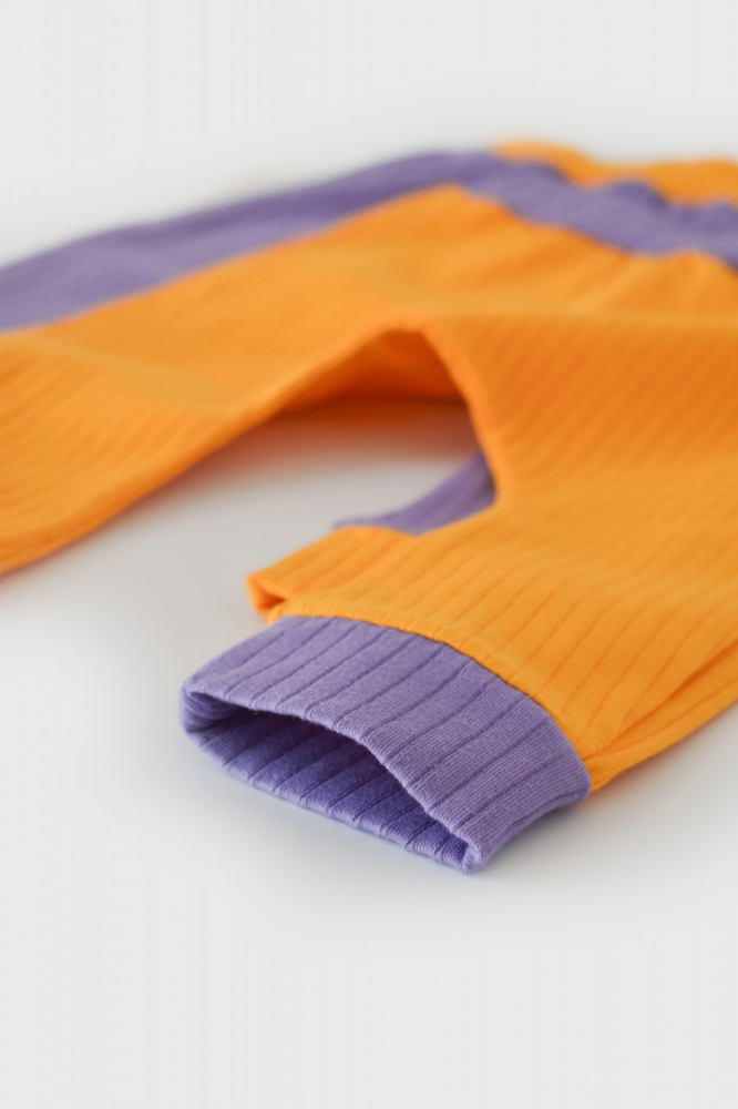 Set 2 pantaloni Ribana Bebe Unisex din bumbac organic si 5% elastan Galben/Mov marime 18-24 luni