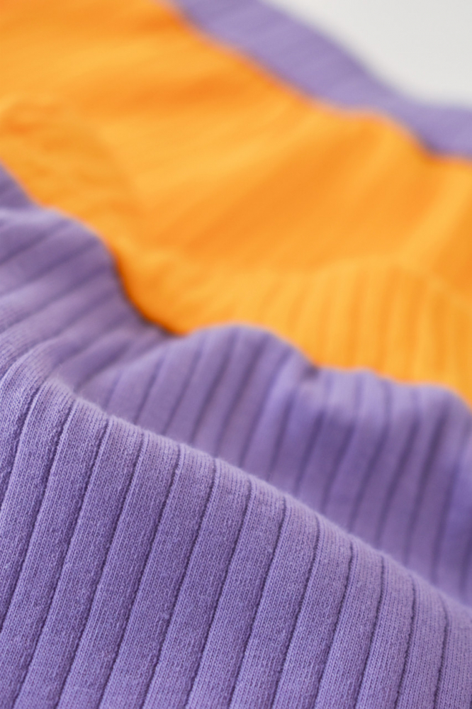 Set 2 pantaloni Ribana Bebe Unisex din bumbac organic si 5% elastan Galben/Mov marime 3-6 luni