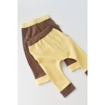 Set 2 pantaloni Ribana Bebe Unisex din bumbac organic si 5% elastan Vanilie/Maro marime 18-24 luni